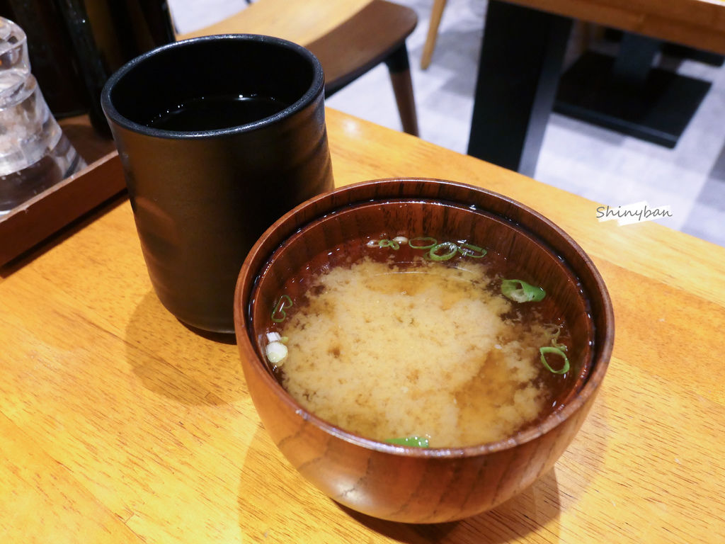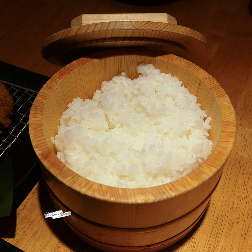 味噌湯、小菜、高麗菜絲、白飯可以免費續加。味噌湯內容物就是很簡單的海帶;高麗菜絲切的比較粗富有口感;小菜就是較一般的醃蘿蔔跟牛蒡;米飯更是採上等越光米,粒粒Q彈飽滿,平常不吃米飯的我竟然吃了三四碗。