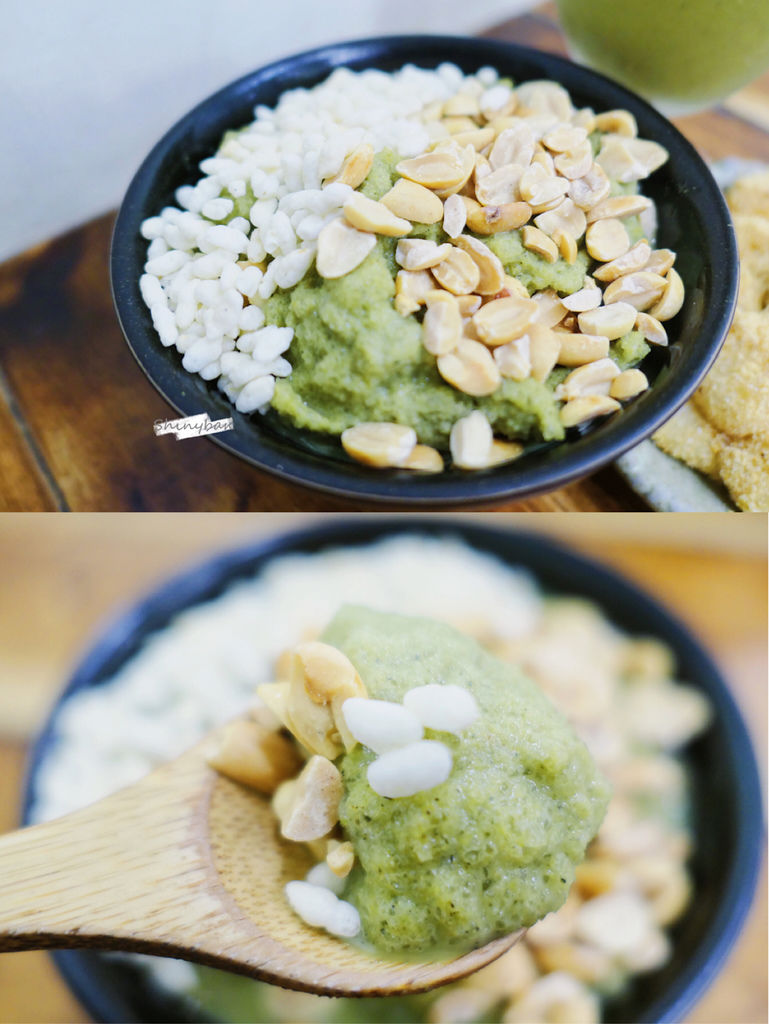 這道和冰鎮擂茶品嘗不出太大差異,我能分辨出最大不同大概是承裝容器,一樣是擂茶冰沙,上頭增加了花生粒,口感又更為豐富些。