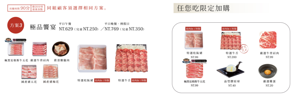 採用嚴選的台灣國產肉品,新鮮且油花分布均勻,另外值得一提的是,上餐速度算快,不會因為吃到飽而故意拖延時間。