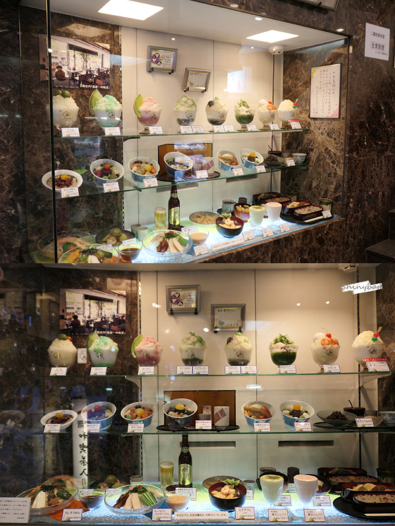 「日式甜點喫茶室 鹿乃子 本店」位於銀座站步行約兩分鐘,一樓以販售伴手禮為主,二樓則是用餐區,店前方櫥窗有放置著琳瑯滿目的食物模型,樣樣樸實且經典。