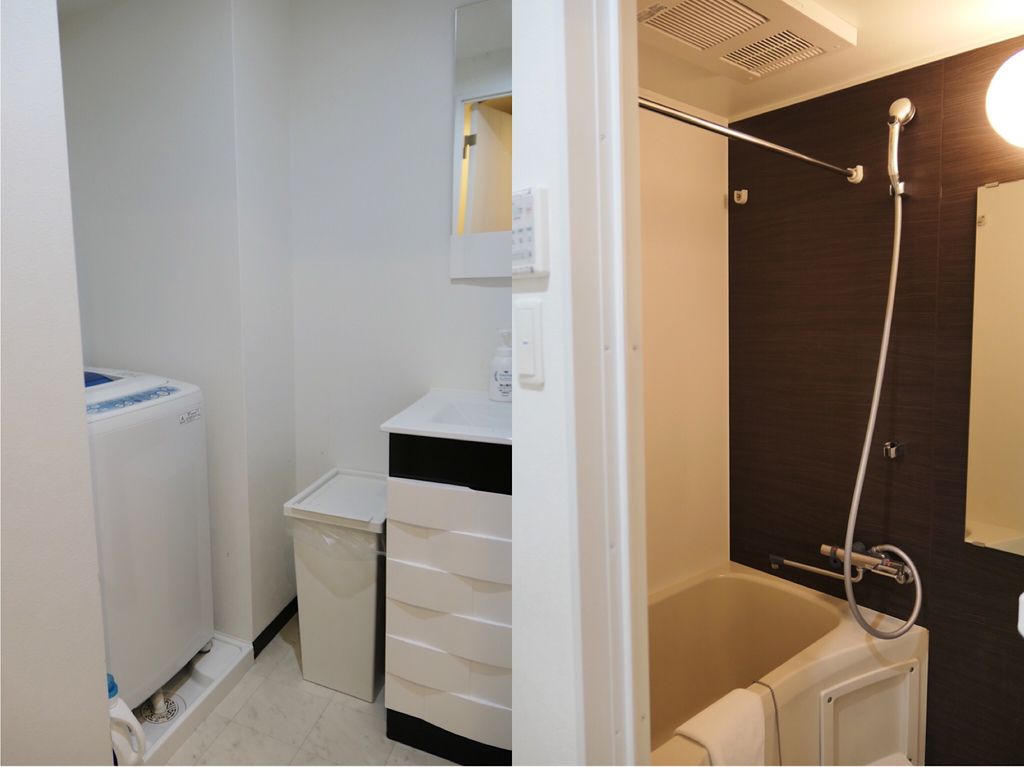 四人房兩晚只要五千左右,代表每晚價格一人不到七百,就能享受分離式浴廁、洗衣機跟小廚房等設備,離大阪環球影城也僅要搭四十分鐘的地鐵,完全讓我們一行人超級滿意而且依依不捨。