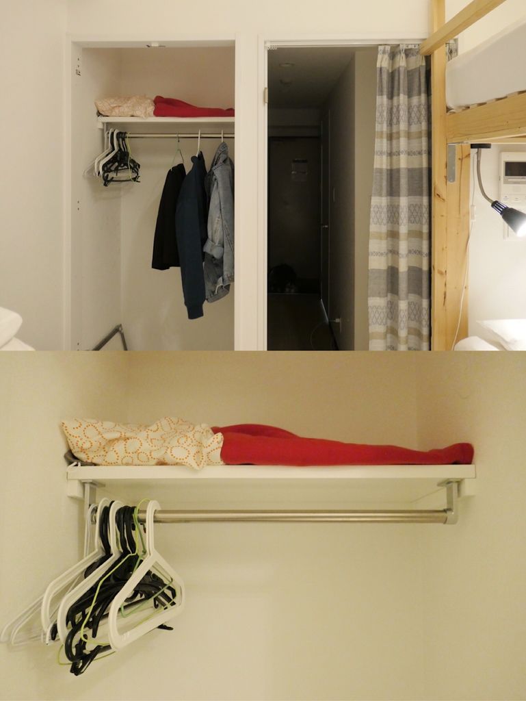衣櫥的部分是開放式,上頭有不少衣架可使用,我想應該有些是住客留下來的。