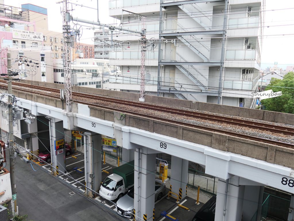 陽台外的景色是鐵道,但慶幸窗戶隔音很好,並不會有太多噪音,而且附近是住宅區,也不會過於嘈雜。