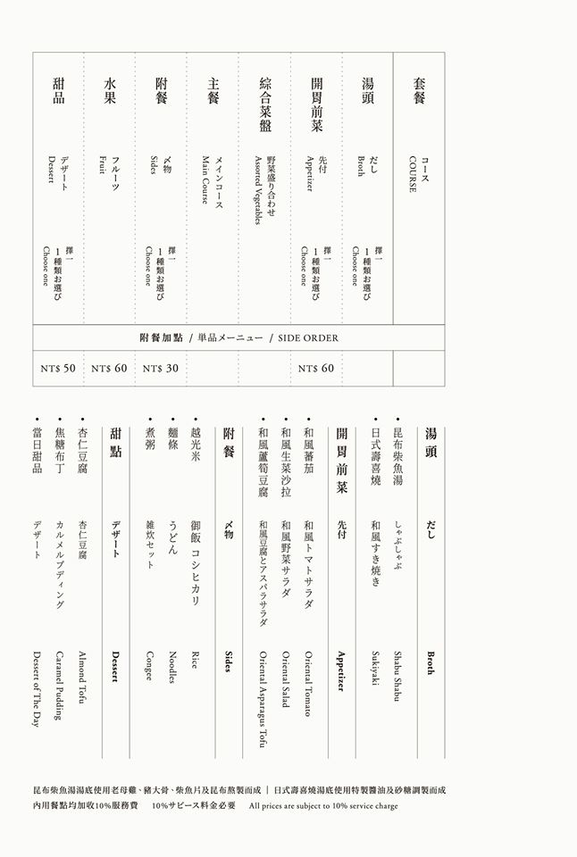 而湯頭不像一般火鍋店有多種可選,這僅有昆布柴魚湯頭及日式壽喜燒兩種。昆布柴魚湯清淡,隨著食材熬煮增添鮮味,最後煮粥更是令許多人拜倒其石榴裙下。