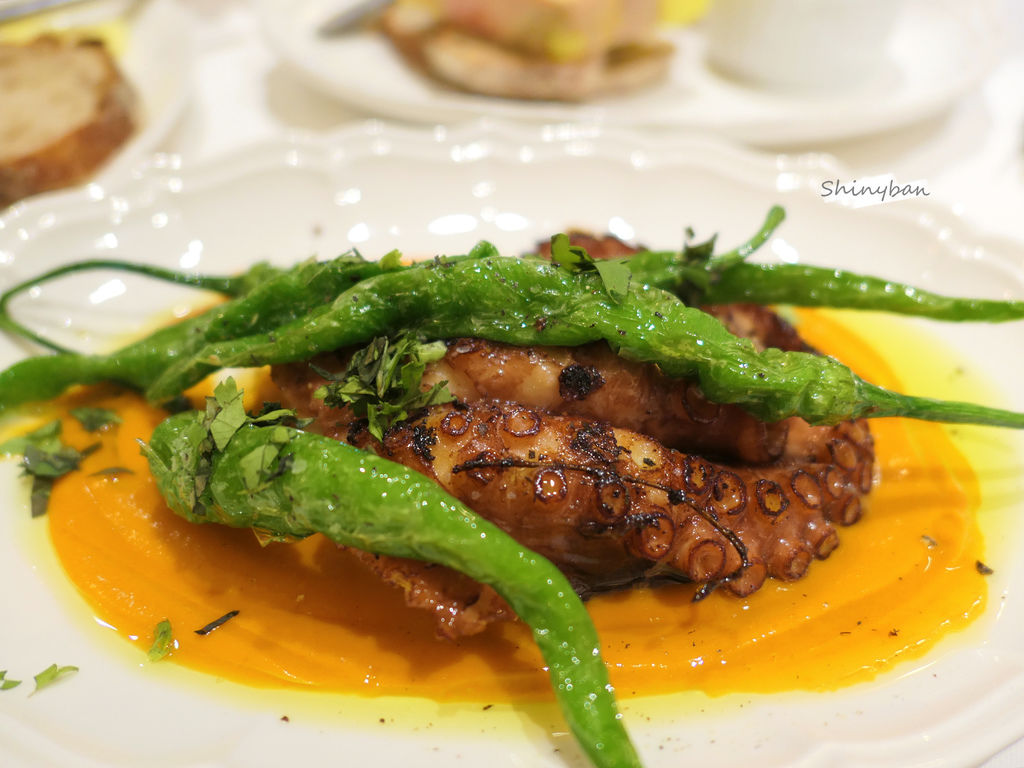 有別於以往對章魚脆口的印象,以奶油香煎的章魚腳,外皮帶點微焦,肉質則是細緻軟嫩,可以用刀叉輕易撕開,帶纖維的鬆軟口感,完全是意料之外。
