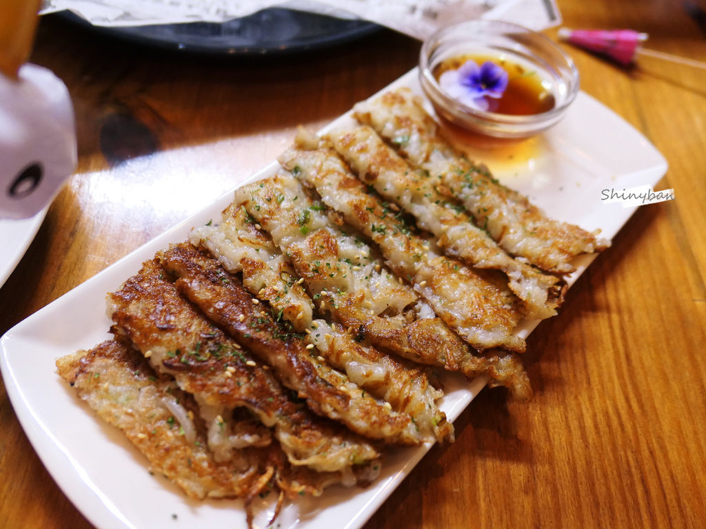 這道的口味及口感都讓我感到驚奇,說他是煎餅,倒不如說是餅狀的蘿蔔糕。裏頭有蘿蔔絲跟水晶魚,口感偏軟,香氣十足。