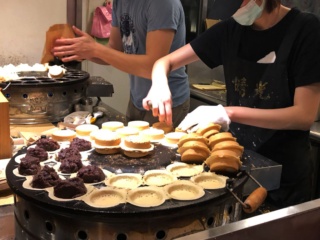 看著烤盤上不停轉動、翻面的紅豆餅,裏頭夾著飽滿的餡料,陣陣的餅皮香氣光回想就令人口水直流。