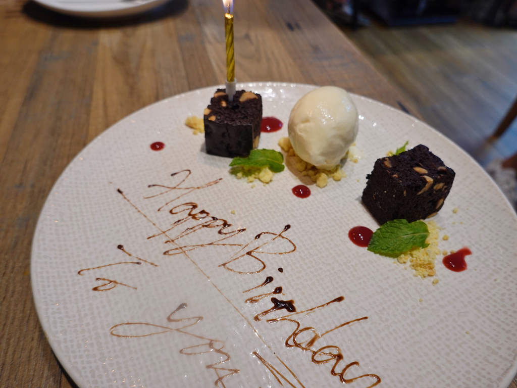 而當天剛好是生日慶祝,店家也很貼心的在盤上作畫,也插上了根蠟燭,其實無論是否有慶生字樣,和重要的人在「Restaurant Page 頁小館」飽餐一頓,就是令我無比滿足的事了。