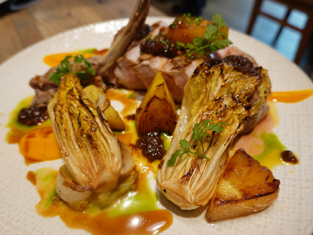 每季的菜單醬汁跟點綴蔬菜會有些許不同,焦糖鳳梨、胡蘿蔔泥跟娃娃菜搭配天衣無縫,甚至是沒寫出的油蔥醬香氣更是成為所有食材的媒介,是道既粗獷又細緻的料理,我非常喜歡。