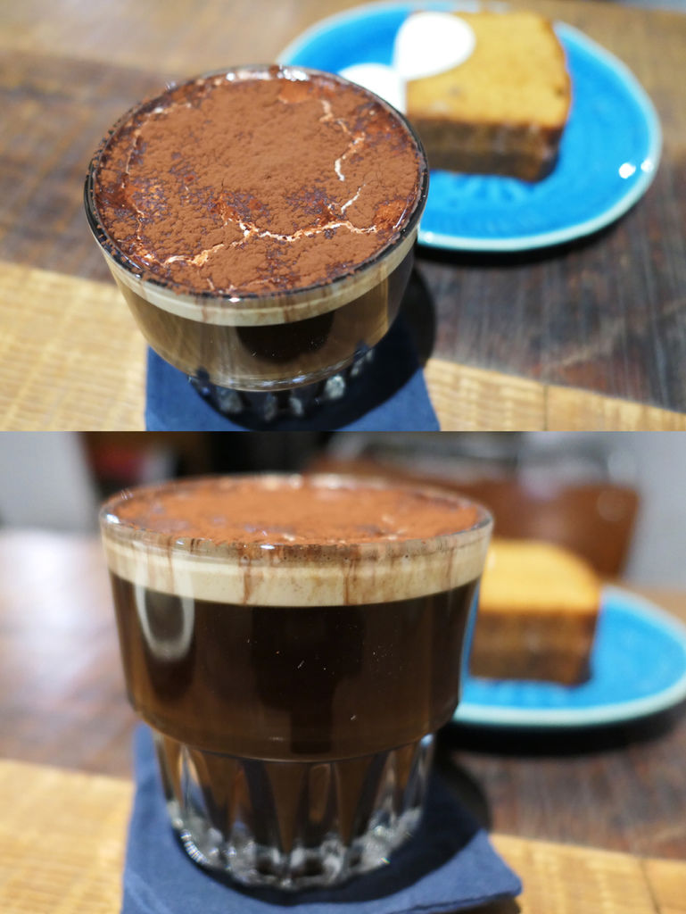 做法是將黑咖啡和黑糖混合,上頭再淋上鮮奶油及撒上可可粉。帶咖啡的酸度和黑糖的甜度,咖啡苦味並不明顯,口感滑順十分特別。
