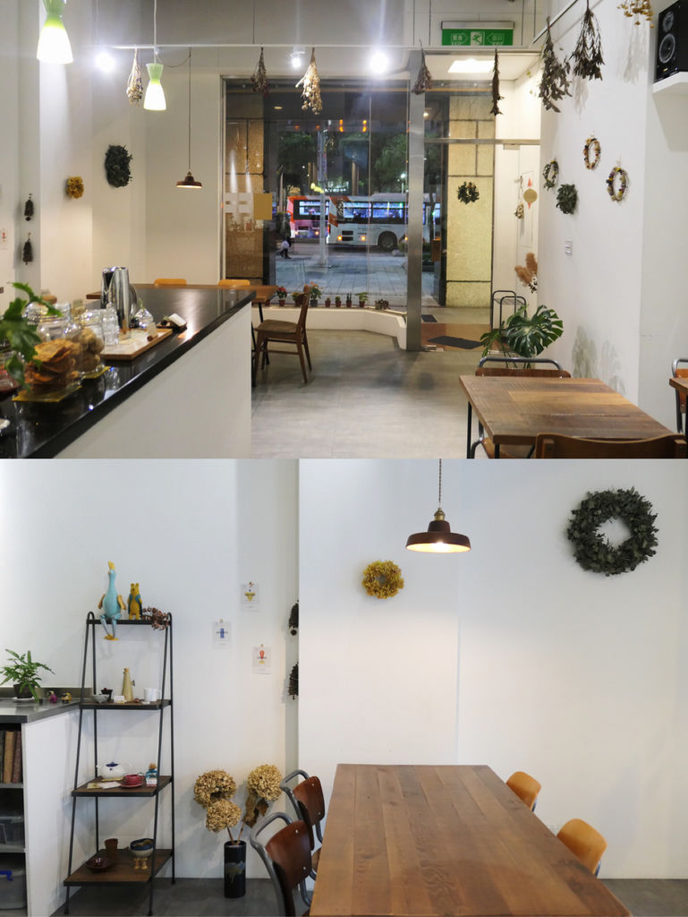店面雖不算太過起眼,但從落地窗看進店內,幾張簡單的木桌椅,以及垂掛的乾燥花,這種簡約溫馨感我倒是挺喜歡。