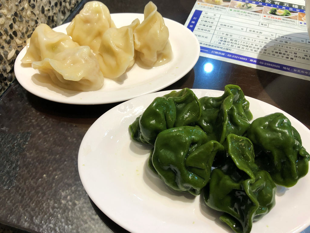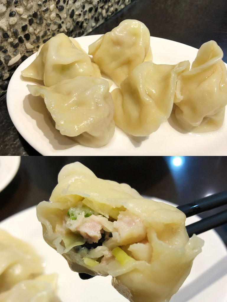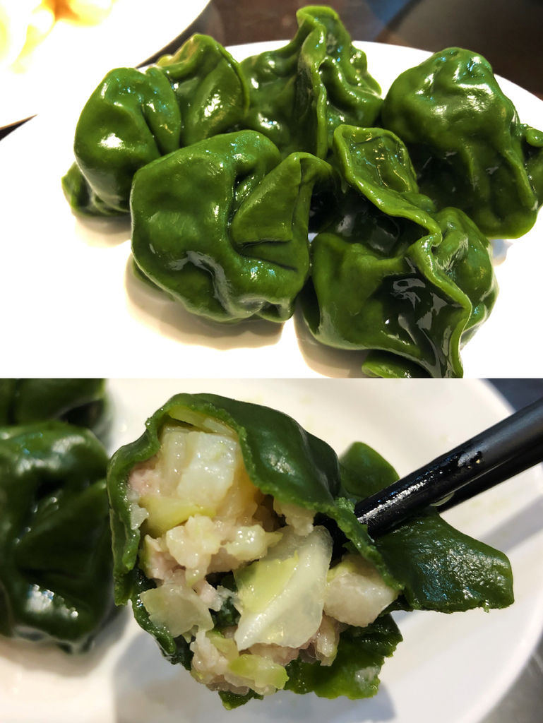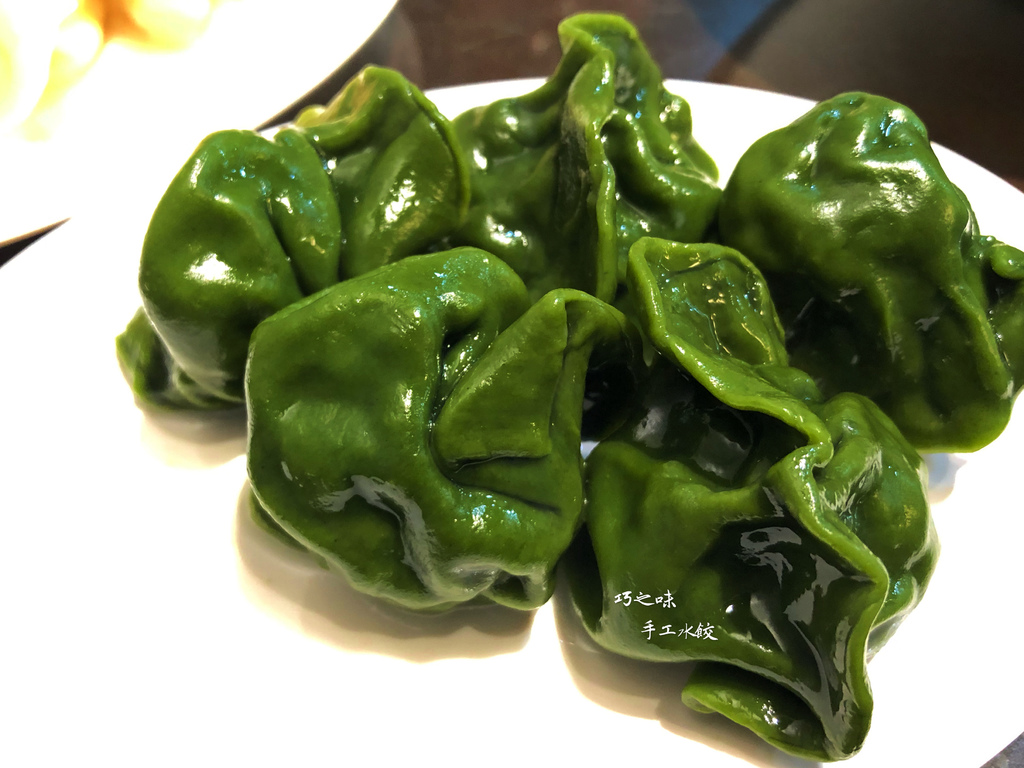綠油油的干貝水餃就是店內人氣口味,相較於一般水餃皮,綠藻皮更是多了些厚度,再加上些許的獨到香氣,我很喜歡。