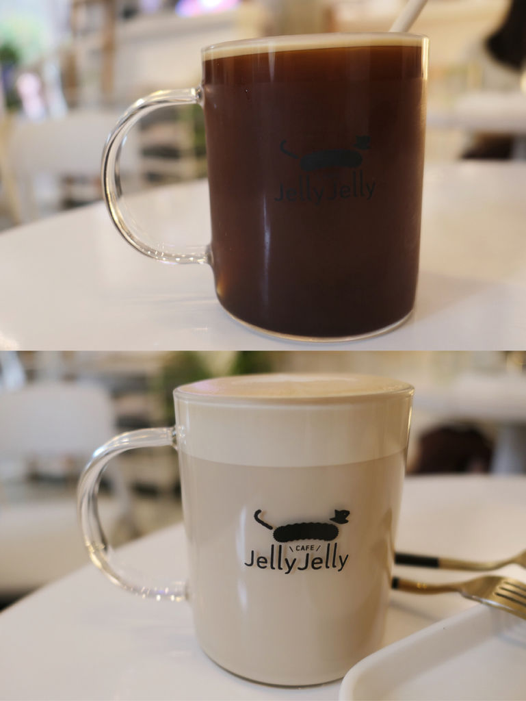 「JellyJelly 慢工烘焙」低消是飲品一杯,以容量跟品質來說,價格不低。美式中規中矩卻要價上百;拿鐵部分牛奶比例多,咖啡味偏淡,但還算順口。