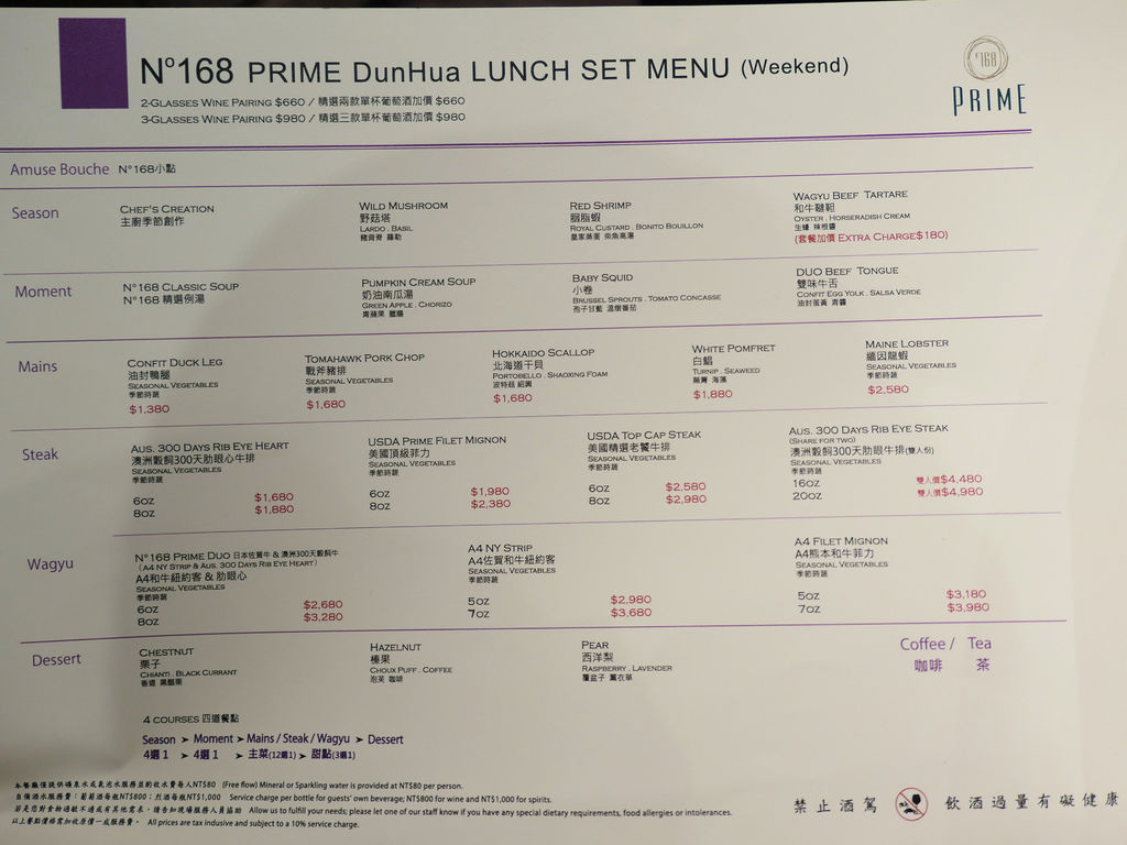 「N°168 PRIME」原於大直維多利亞酒店,而店名也是因其門牌號碼而得,在2018、2019年連續獲得米其林餐盤推薦的殊榮。