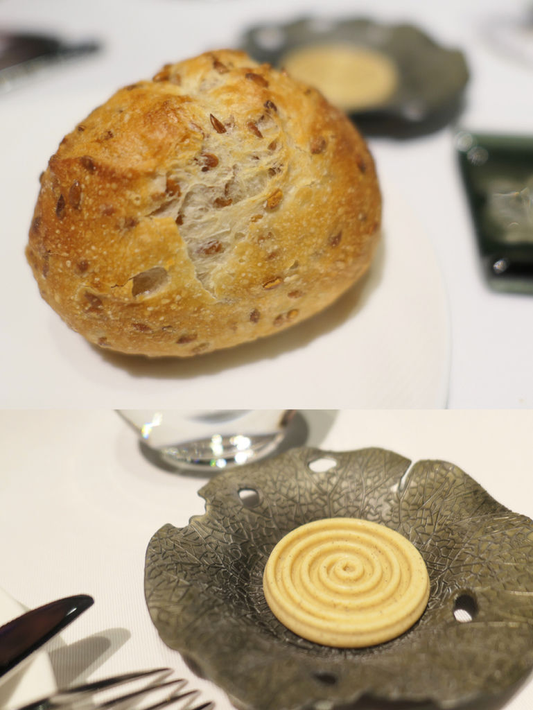 剛上桌的餐前麵包熱騰騰的,一口咬下外酥內軟,是我喜歡的口感,搭配一旁的焦化奶油更添香氣。