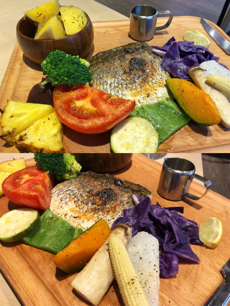 照片就可看得出來,所有食材真的是原形呈現,多種的節氣蔬菜及鮮嫩的鱸魚僅用少許香料及椰子油做低溫烹調,每一樣都吃得出最原本的食材鮮度及口感。