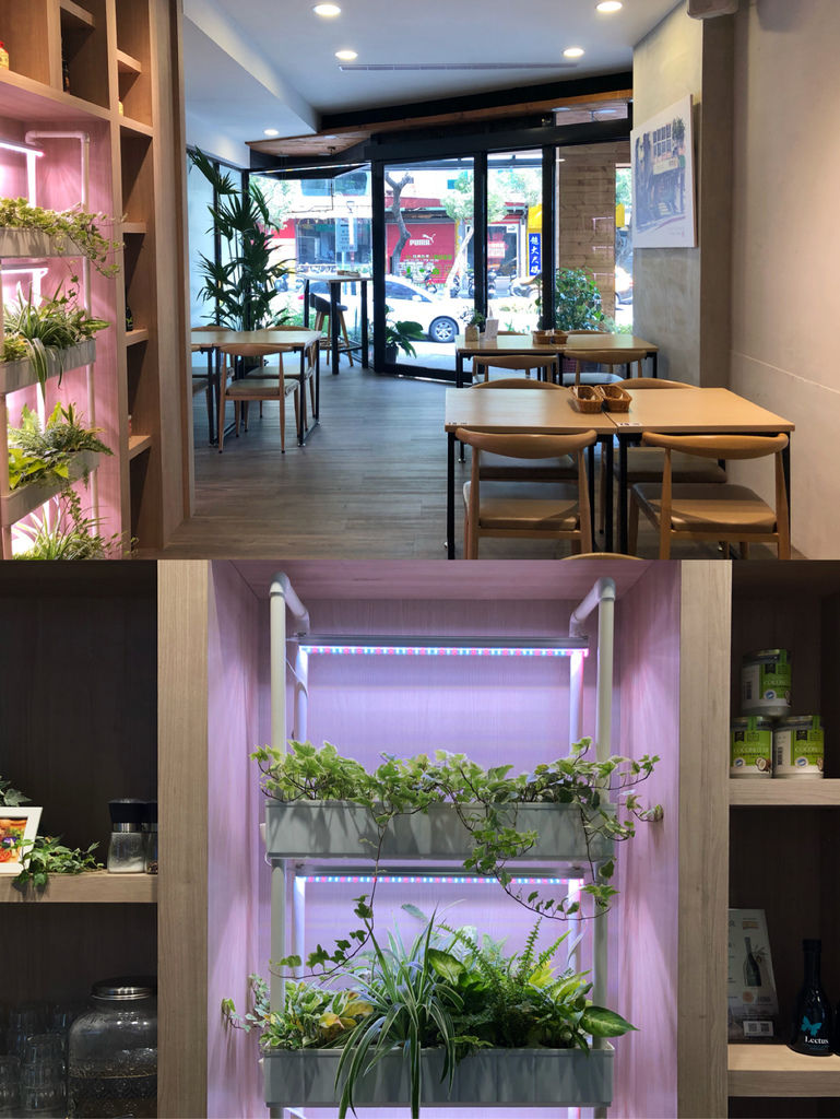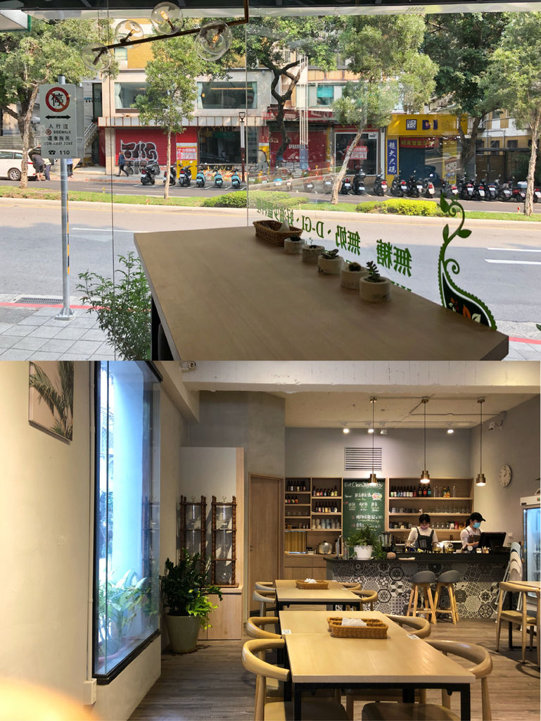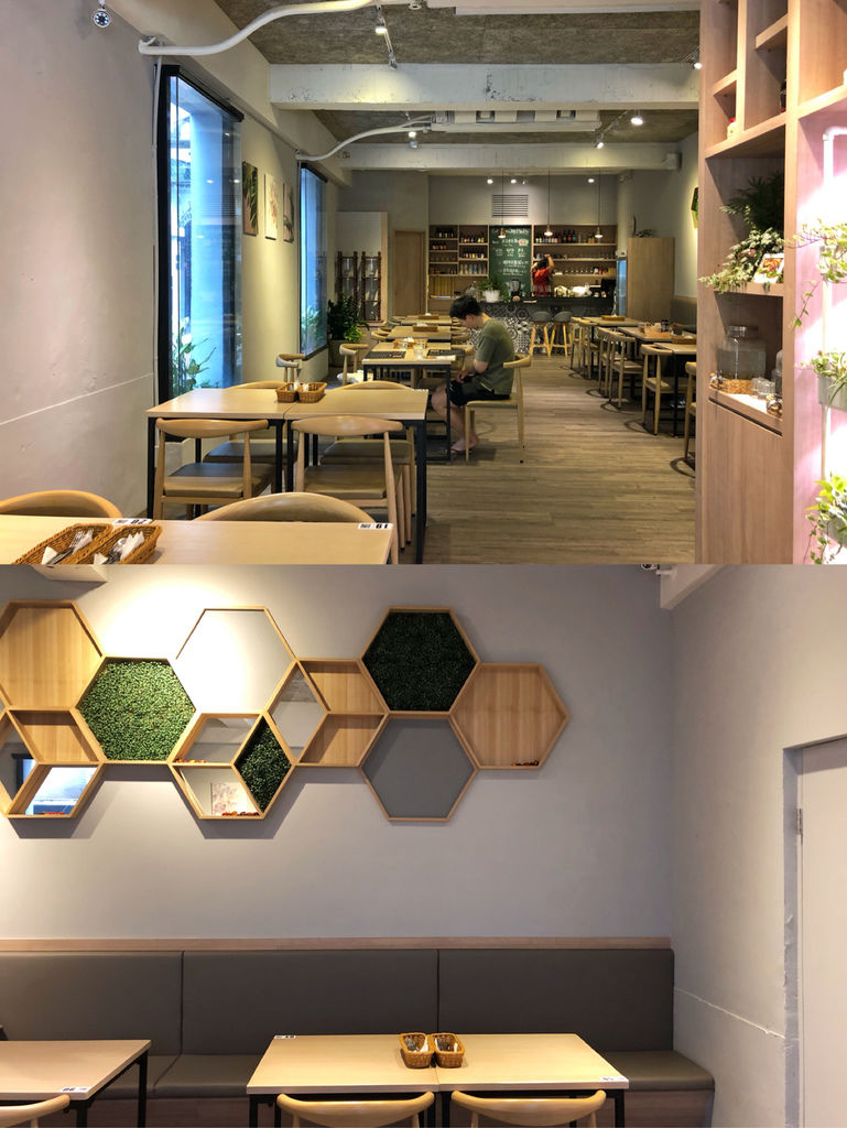 店家的裡裡外外,都走花草系列的清新自然風格,淺色的木地板、木桌椅,在窗外的灑落之下,顯得更為有朝氣。