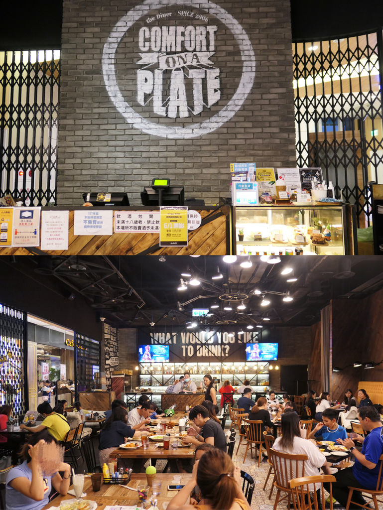 承襲一貫的美式工業風,其座位數也十分眾多,最多可容納約九十位客人,在假日晚間,看得出有不少朋友及親子聚會。