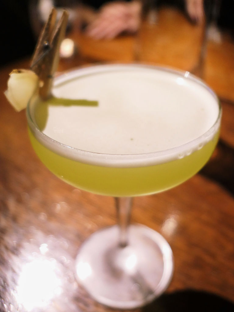 gin/chartreuse green/maraschino/apple shrub/bitters