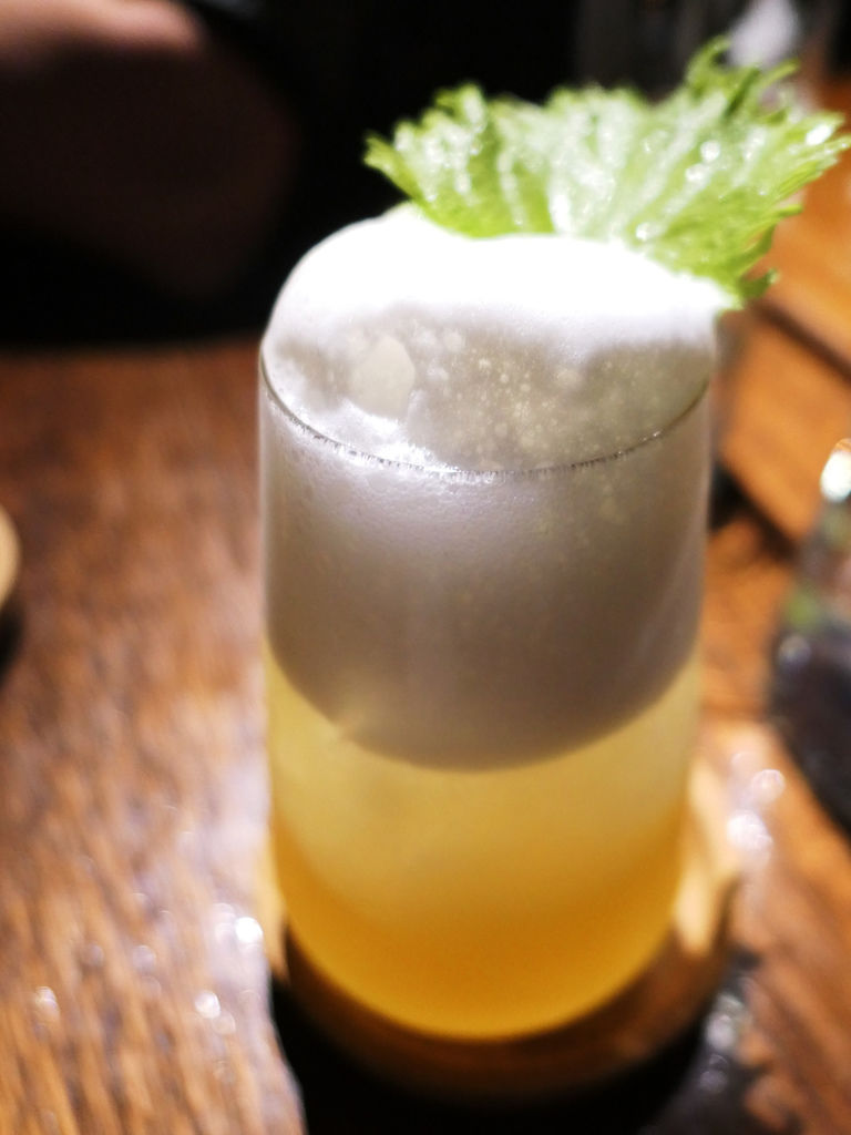 whisky/梅酒/disaronno/halfmoon shiso/egg white/soda