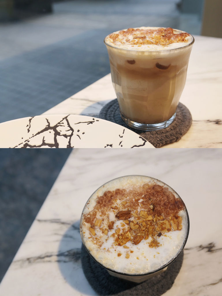 鹹花生拿鐵是以自製花生醬與拿鐵做混合,上頭再撒上花生顆粒,香氣十足,但對習慣喝無糖拿鐵得我來說,口味較偏甜。