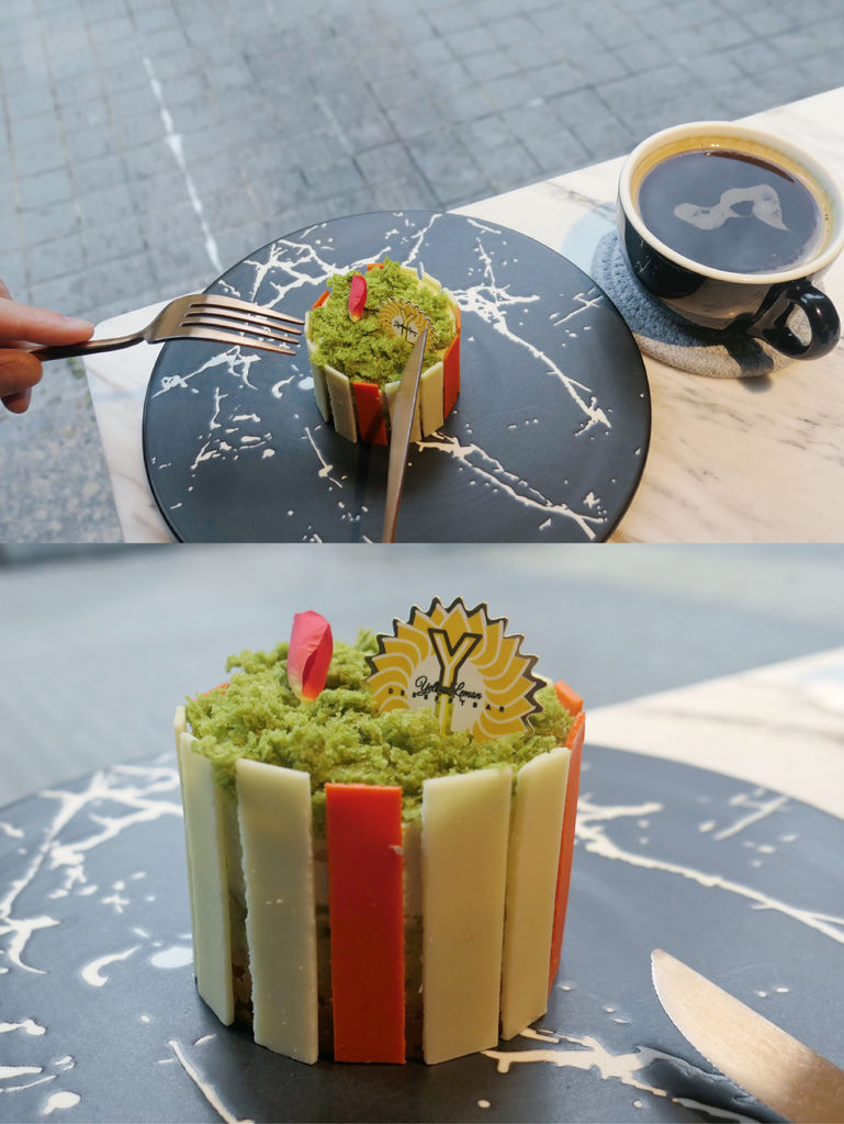 雖然肚子已撐到不行,但看到甜點櫃內的繽紛蛋糕,還是止不住慾望點了一塊,標緻的法式開心果蛋糕,完全沒令我失望。