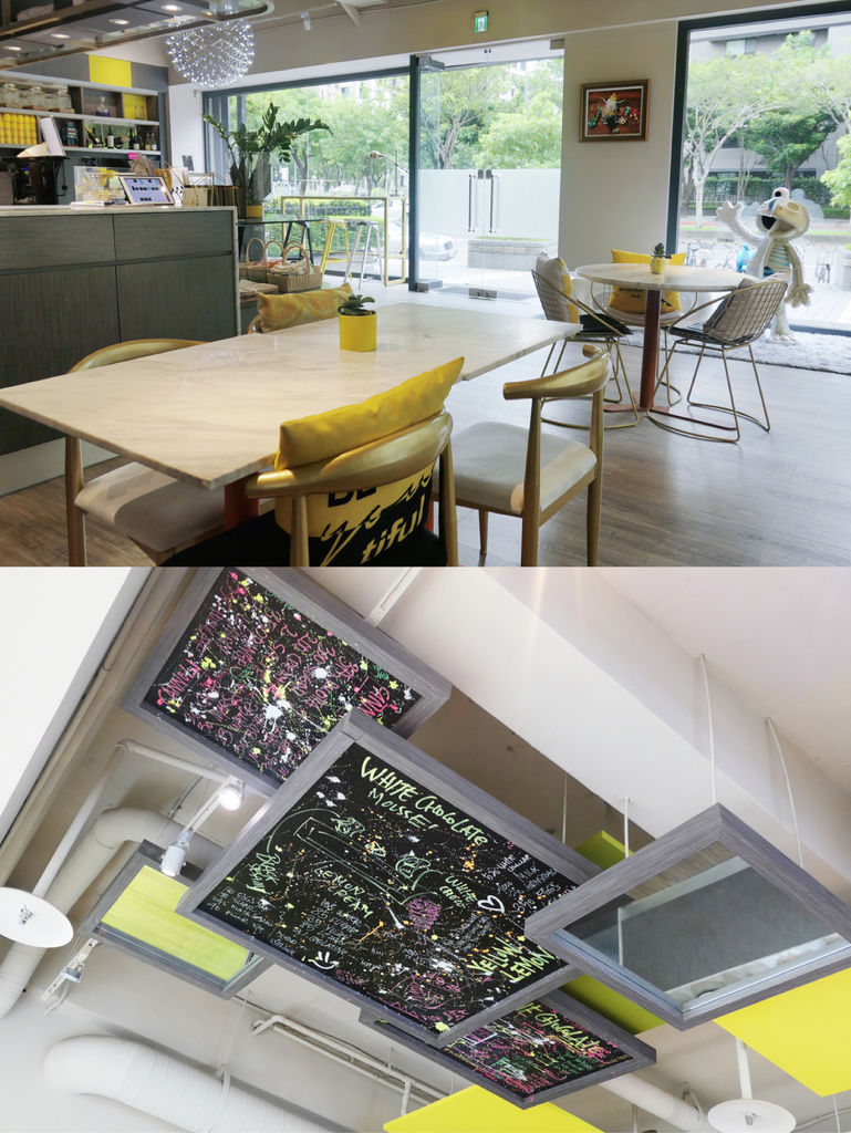 抬頭一看,更吸引我的隨興的塗鴉板,如同「Yellow Lemon Dessert Bar 黃檸檬」的餐桌畫盤,在揮灑的隨興中藏著縝密的思維。