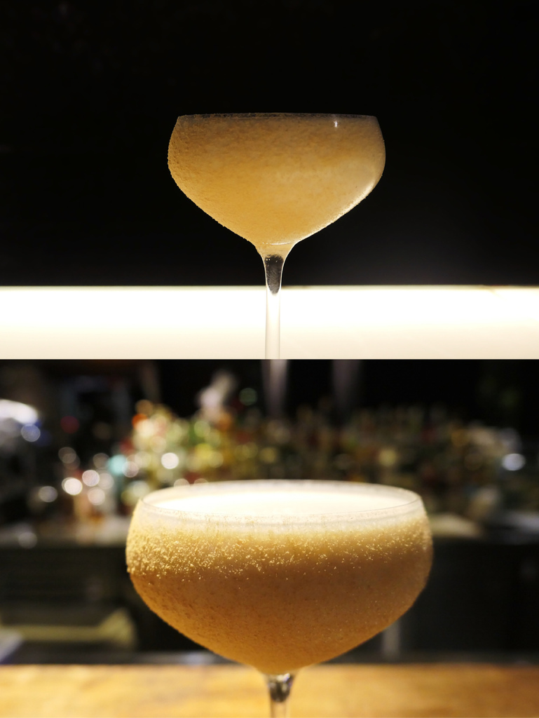 上頭的綿密泡沫有添加蘆筍和蘋果,不僅有淡淡香氣也增添口味及口感層次,甜中帶酸,是款適合夏天且接受度高的調酒。