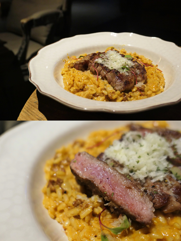 一般常見燉飯搭配的是海鮮,而在「333 Restaurant & Bar」的是牛排版本。