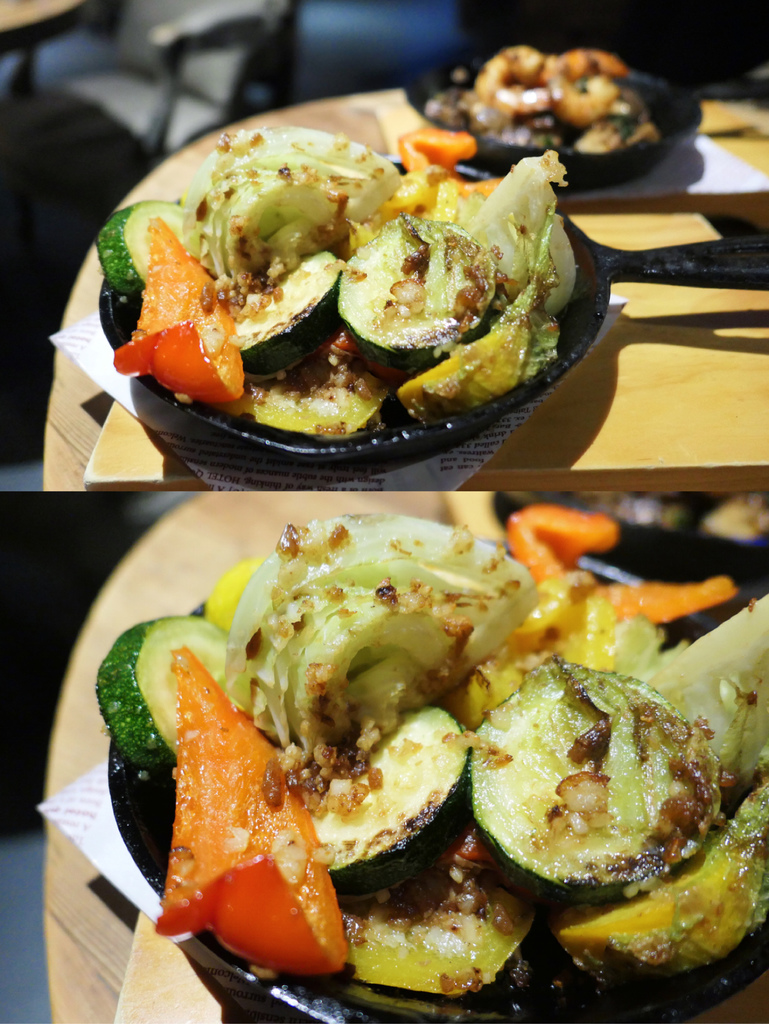 時蔬都是我愛的蔬菜,像是櫛瓜、甜椒跟甘藍,烹調的火侯剛好,食材皆保有脆度卻不會過生。
