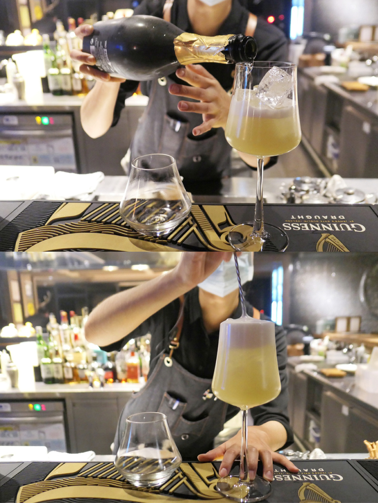在下酒菜上桌之前,先來杯清爽的調酒解解渴吧!同行的友人點了點頭,很好,達成了共識。