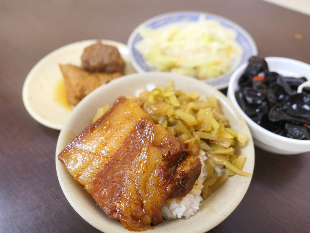 相較於魯肉,我更喜歡滷汁、酸菜與飯的搭配,偏甜的脆口酸菜配上粒粒分明的白米飯,以黏滑的滷汁跟膠質作為媒介融合,真的會忍不住扒上個幾口。