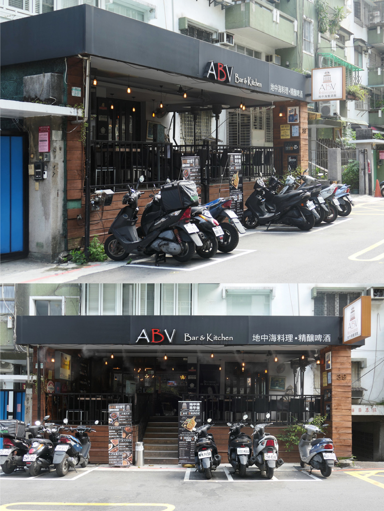 「ABV Bar & Kitchen 地中海餐酒館」位於捷運國父紀念館步行約五分鐘的距離,不僅附近一帶美食盡出,260巷內的餐廳就足以令人眼花撩亂。