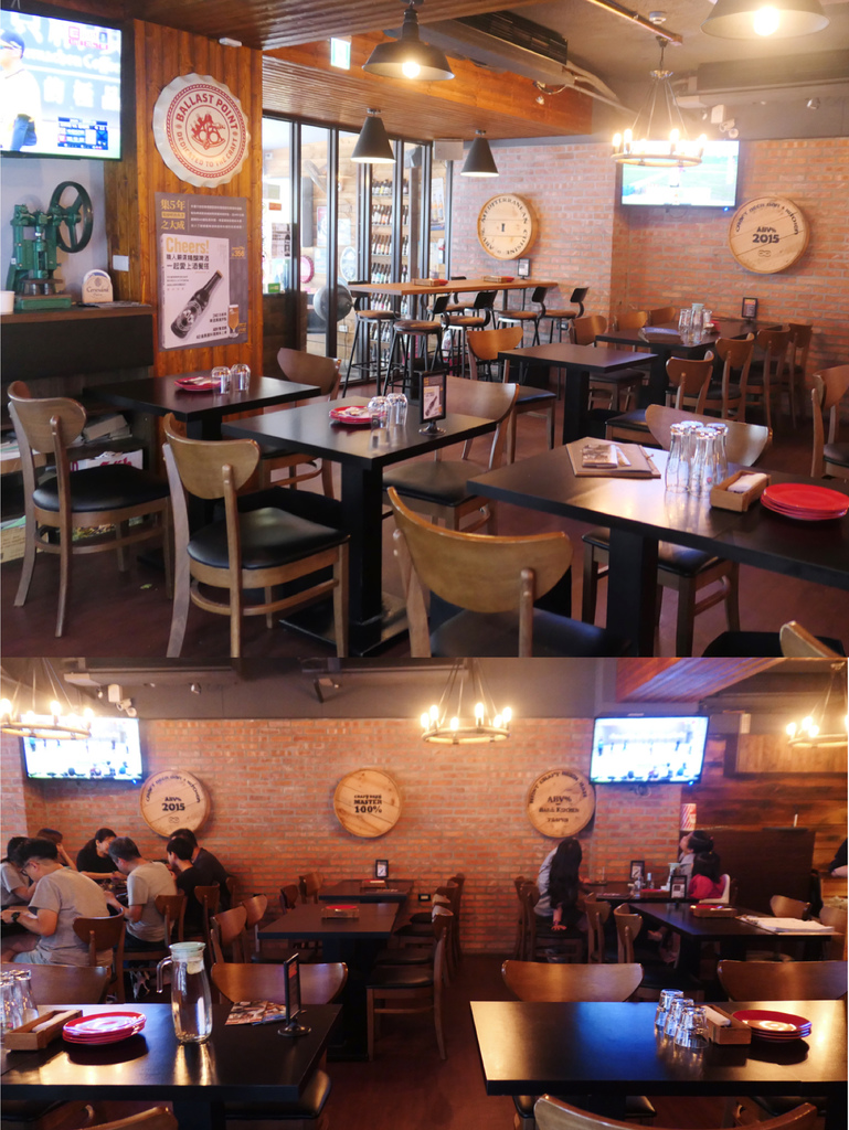 室內則是以紅磚牆及深色木質呈現美式休閒風格,加上酒桶擺飾增添加勒比海風情,繼隨興又富有異國情調。