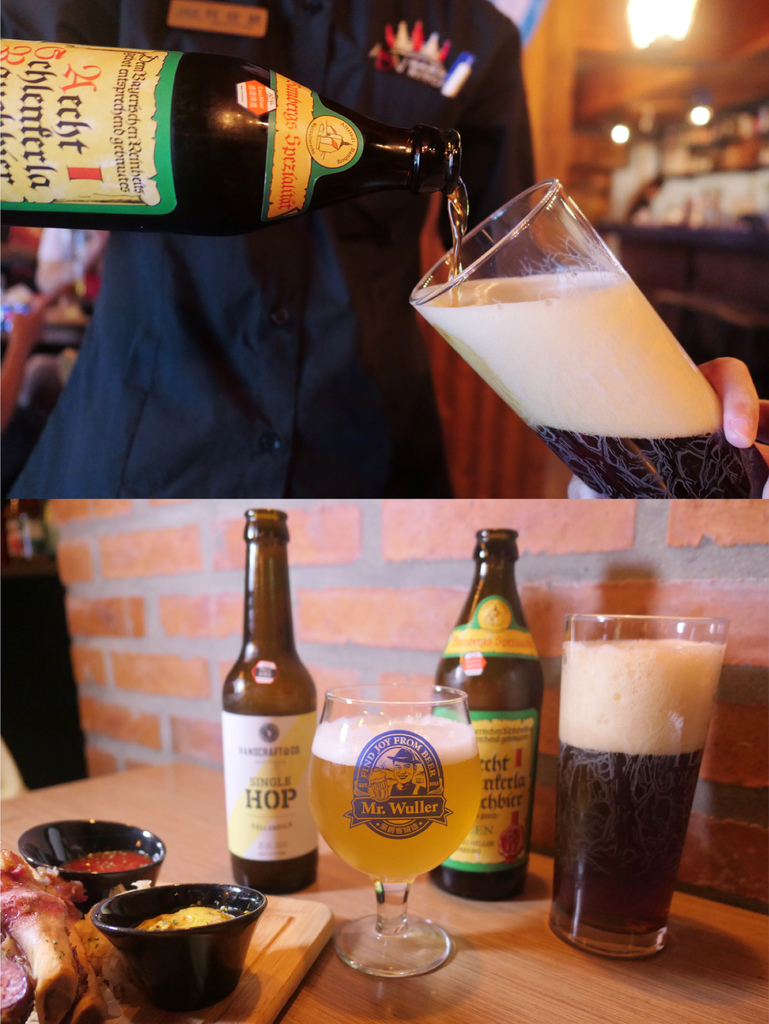 其中一瓶的龍格煙燻小麥啤酒,這款是德國傳奇酒廠的經典之一,帶有濃厚的煙燻氣息,不僅風味,連香氣也是,搭配肉品十分合適。