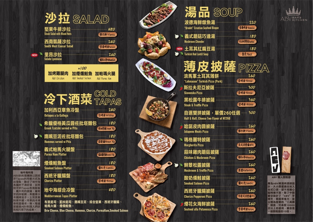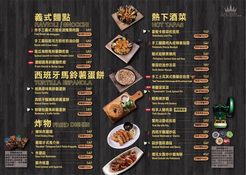 裏頭不僅有各種精釀啤酒的介紹,還有其適合搭配的餐點,更是無私的公布ABV Bar&Kitchen 的餐點食譜,為的就是讓更多人在日常中也能隨時享受精釀啤酒搭餐的美好。
