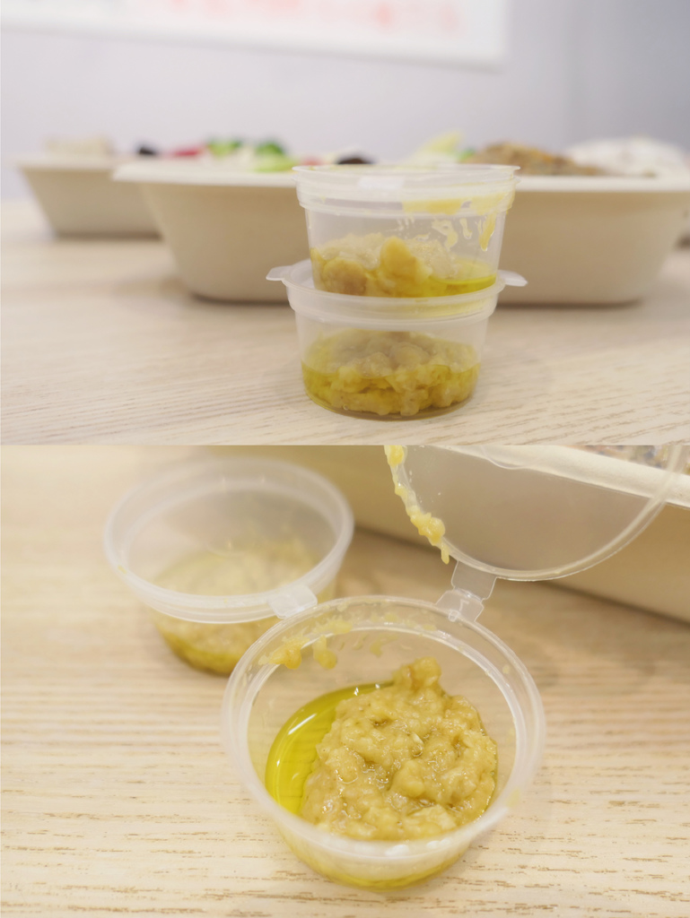 外帶便當店家也會附上一杯自製法式橄欖油蒜醬,可以說他是便當的靈魂之一也不為過。
