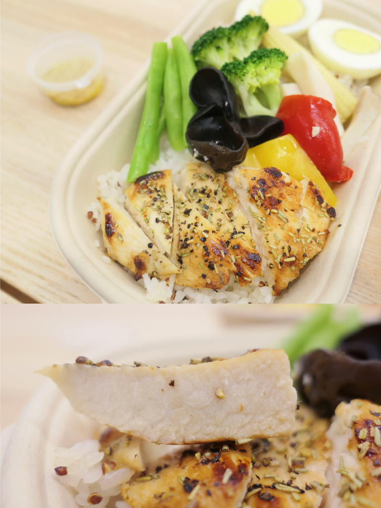 其中一份是店家經典的橄欖油雞胸,健康餐盒的雞胸是標配,但大多是水煮或是舒肥,煎香料雞胸倒是第一次見到。