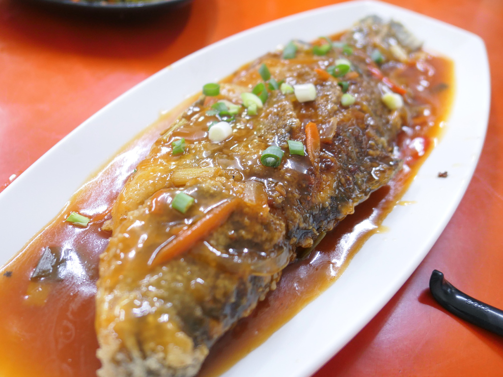 魚應該是使用吳郭魚,魚肉算嫩且沒有太明顯土味,雖稱紅燒但調味不算重,表現中規中矩。