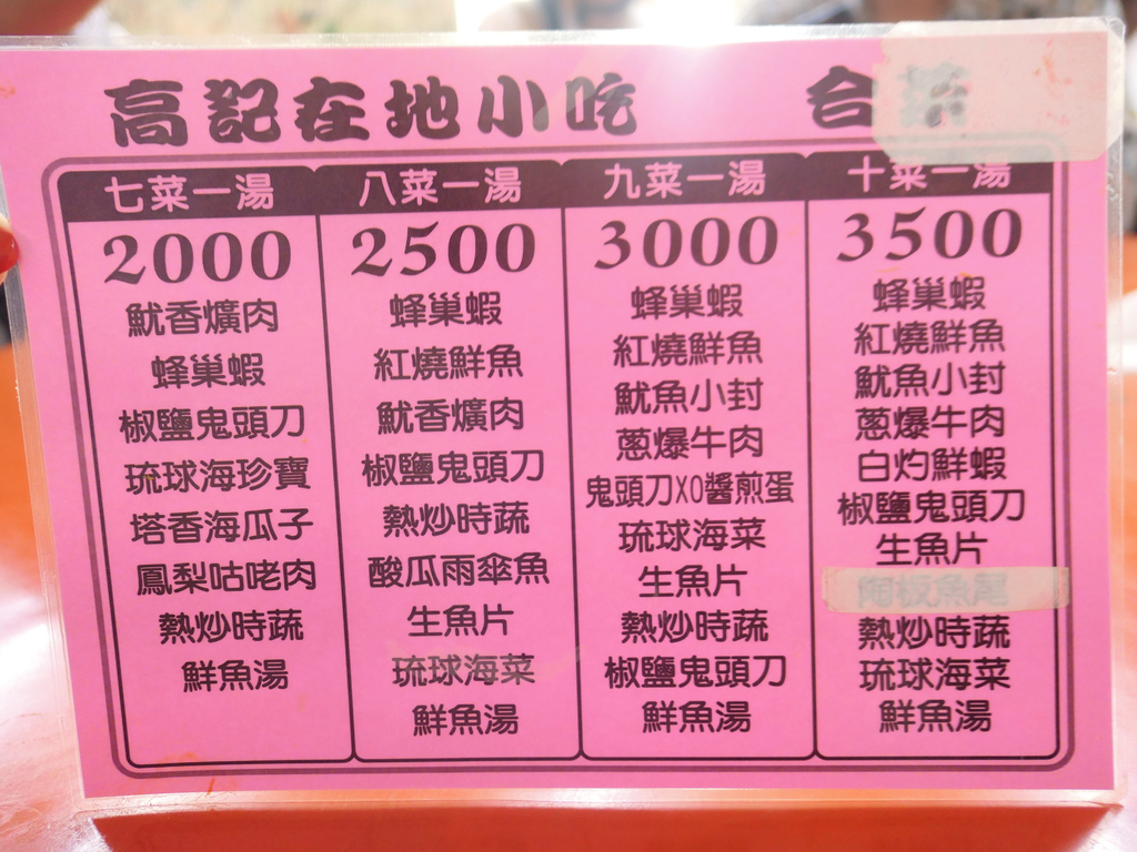 這間「高記在地小吃」可以算是小琉球的人氣合菜料理,不事先預約很有可能嘗鮮不到。