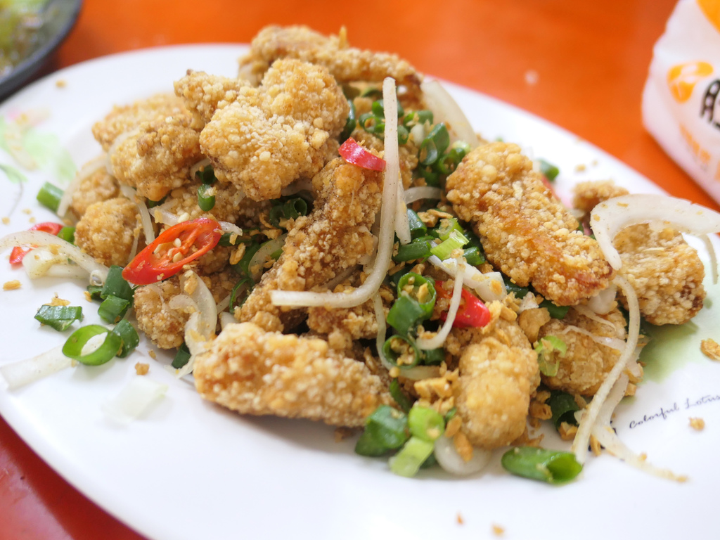 切塊的鬼頭刀裹上裹粉油炸,再以各式辛香料拌炒,外酥內軟又夠味,是道挺不錯的下酒菜。