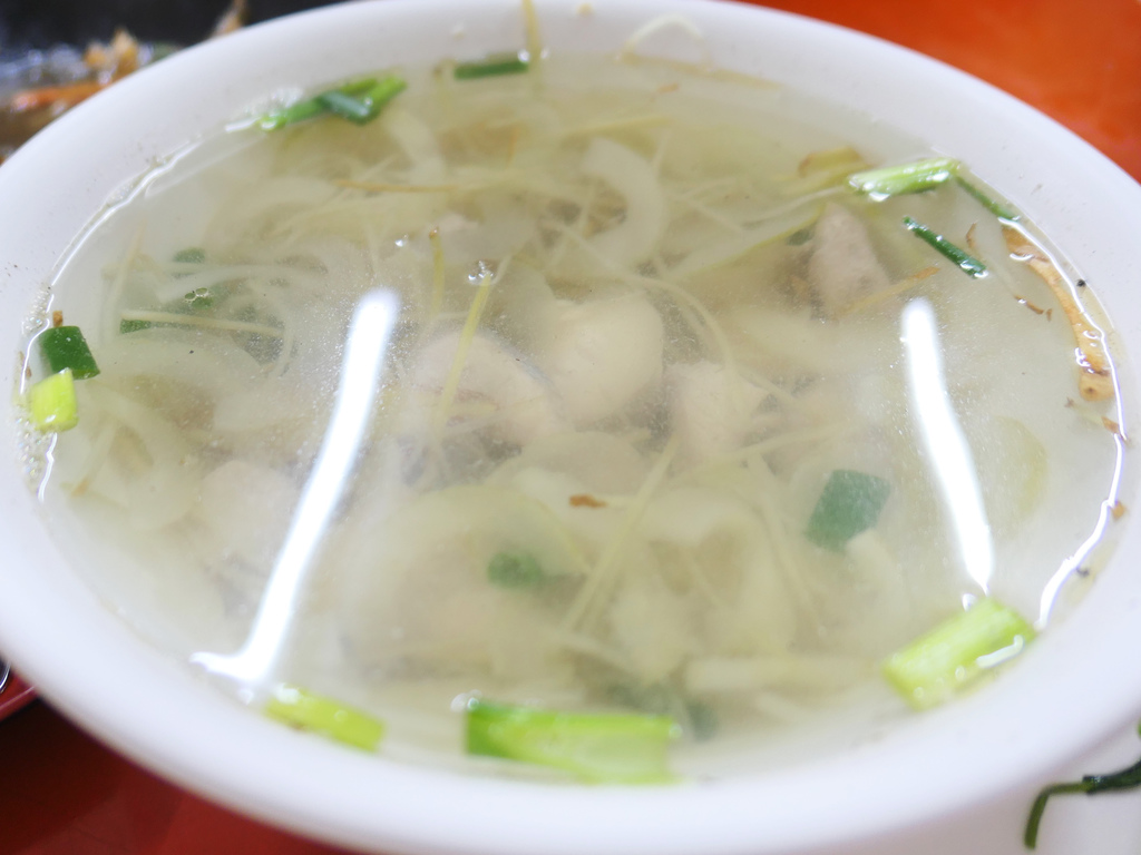 這應該算是薑絲魚片湯,一大碗魚湯裡有滿滿的魚片,調味挺清淡溫和。