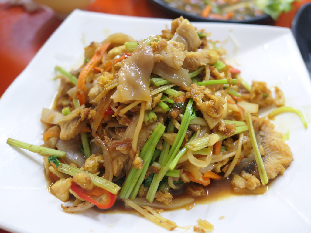 整體有點像木須炒麵的配料,有芹菜、蛋、以及富有口感魚皮的魚片,夠味下飯,口感層次多。