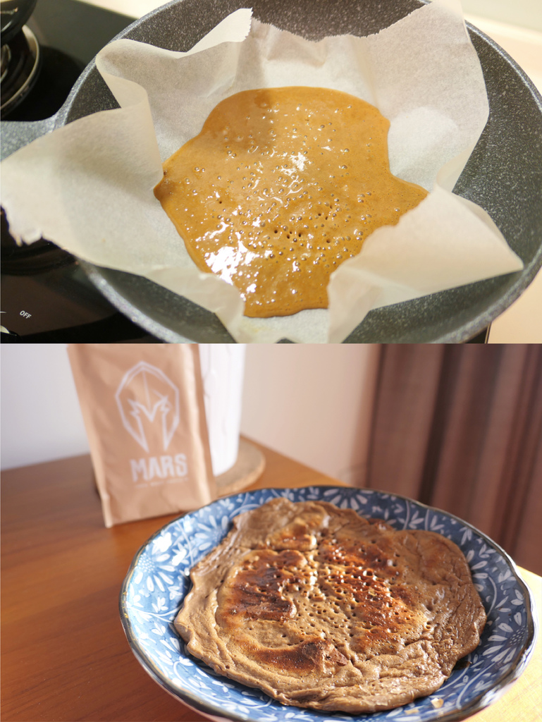 若是覺得沖泡蛋白飲一成不變,可以試著做成甜點,我這懶人煎餅的作法跟材料超級簡單。