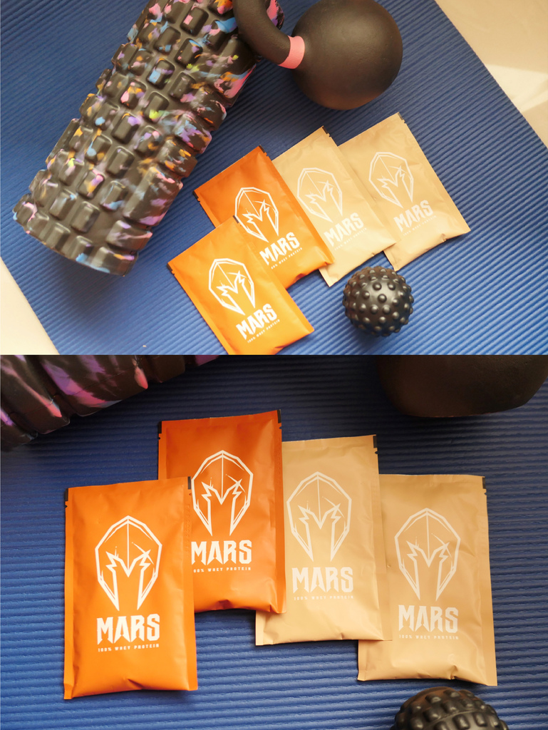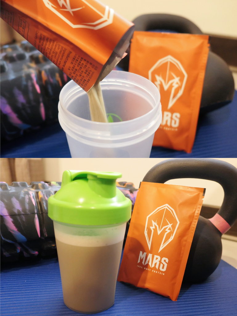 而除了大份量的袋裝,「MARS」也首創便於攜帶的單包裝,免於分裝的麻煩,也能避免乳清蛋白粉受潮而影響品質跟功效。