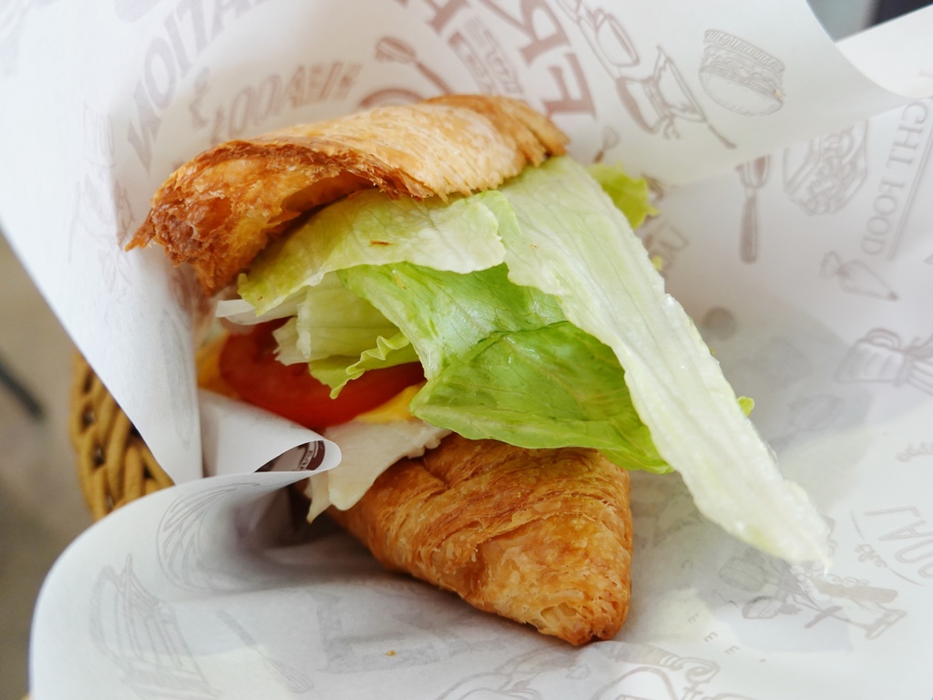 可頌烤的外酥內軟,但相較起貝果的扎實感稍微空虛了些,而燻雞鹹度偏高,我個人還是較偏好帶點美乃滋酸度的鮪魚。