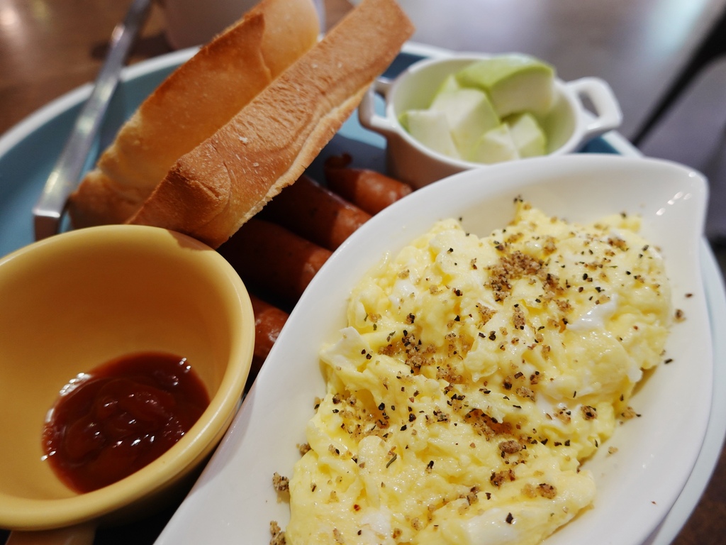拼盤組合算是挺簡單,水果、香腸、炒蛋、麵包,單吃可以,夾在一起當三明治吃也是一種選擇,不過若是和我一樣口味較清淡,可提醒店家炒蛋上的香料可以灑少一些。