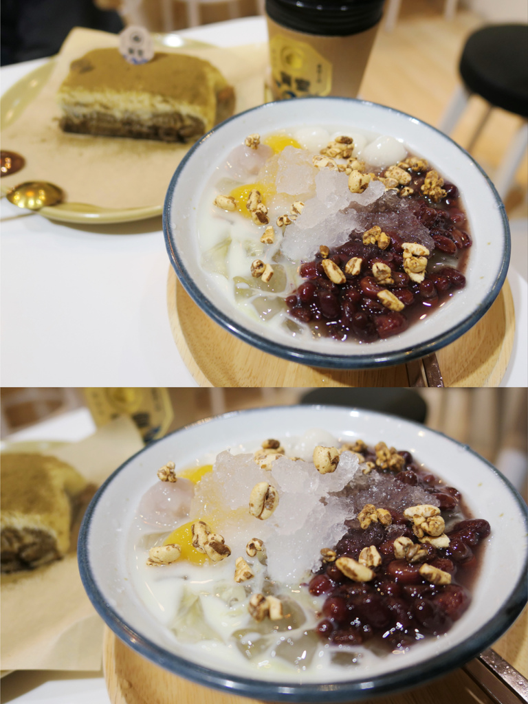 一碗裏頭有紅豆、煉乳、龍眼蜜、湯圓、綜合圓、手工蒟蒻,都是我所喜愛的材料,由於當天天氣冷,請店員幫我加一些小碎冰就好。