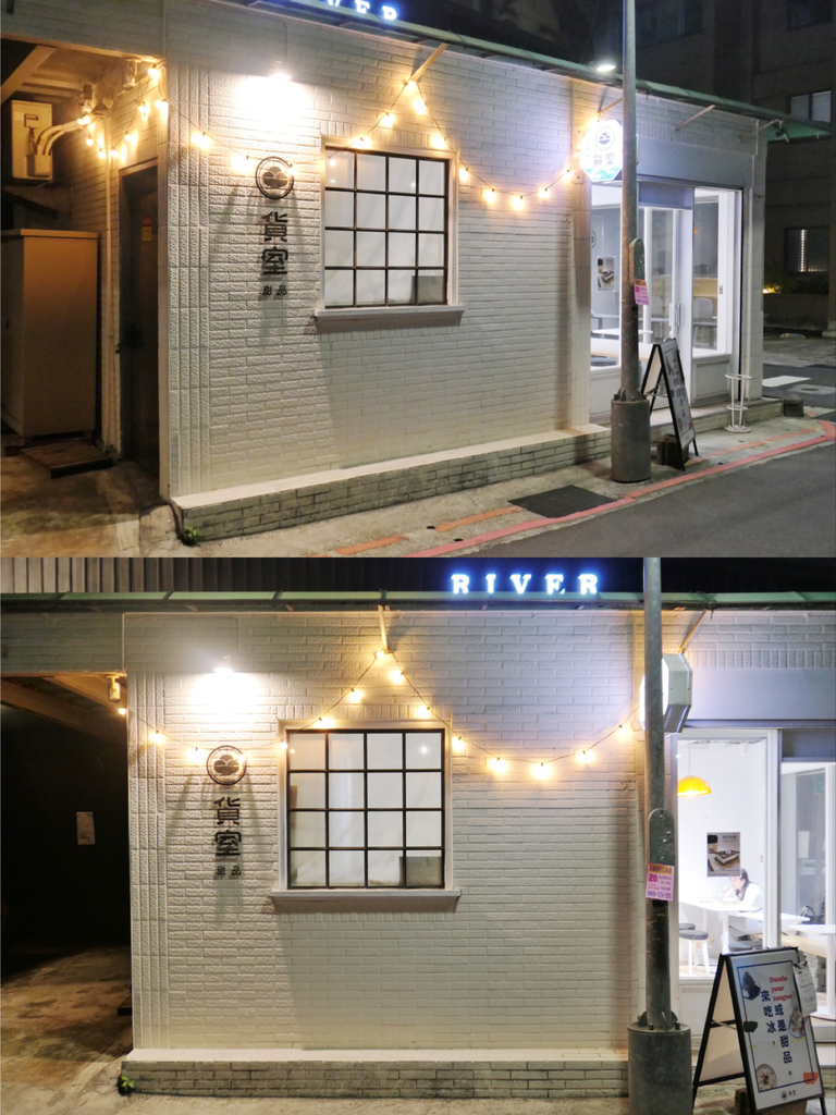 「貨室甜品」店面如同店名,採貨櫃造型的落地窗白色小屋,在三角窗的位置顯得特別出眾,但用餐也稍微赤裸些。