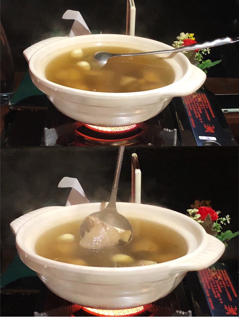 但越煮會越濃郁,可以自行加水稀釋,又能多喝幾碗,十分滿足。不過雞肉肉質差異頗大,有些嫩有些韌,不太穩定。